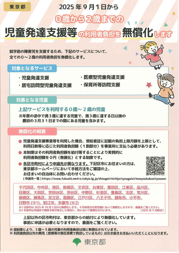 0‐2歳児の利用者負担額が令和7年9月の利用分から無償になります。